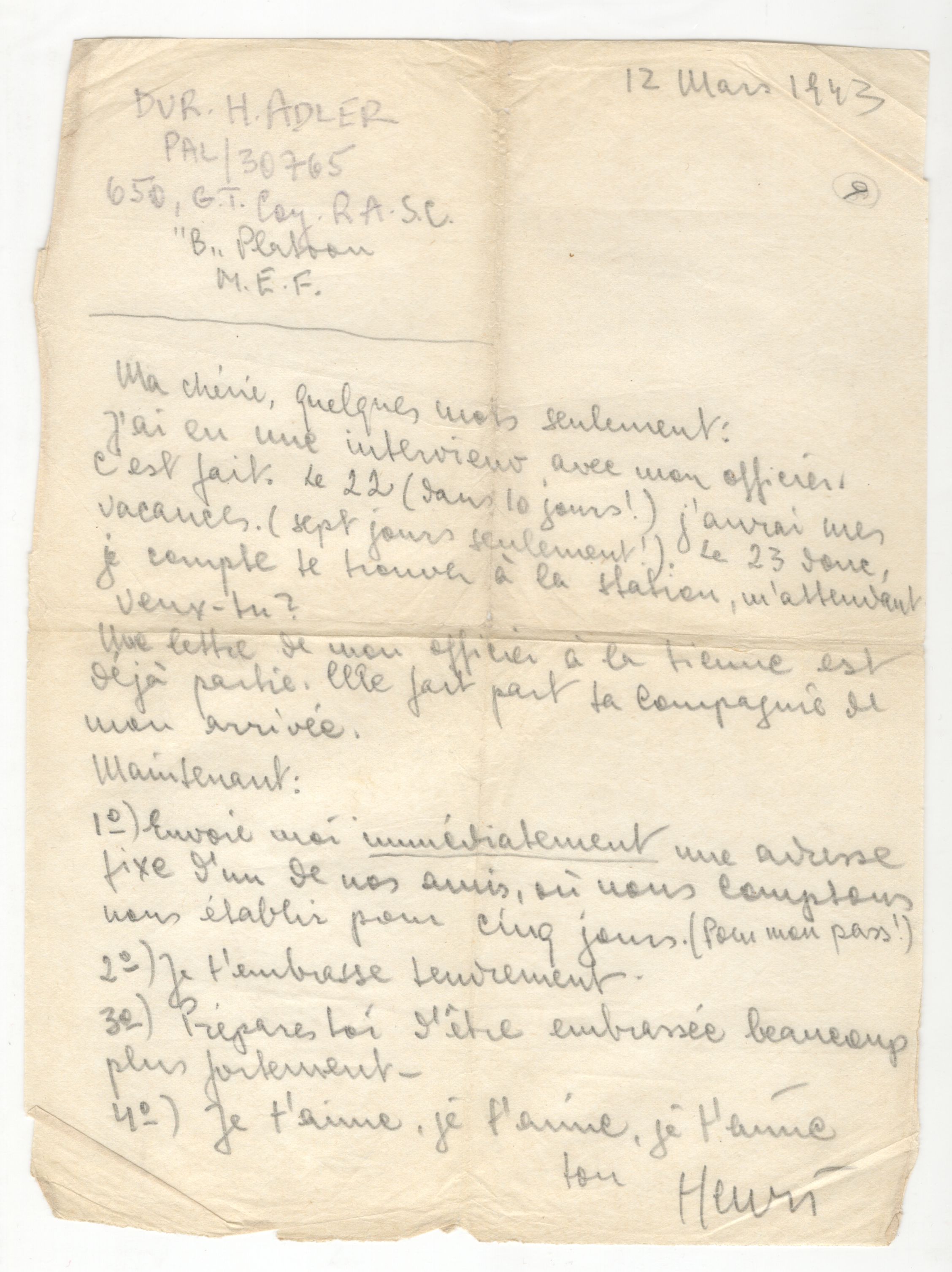- Send me immediately a fixed address of one of our friends, where we count on staying for five days (for my pass!)