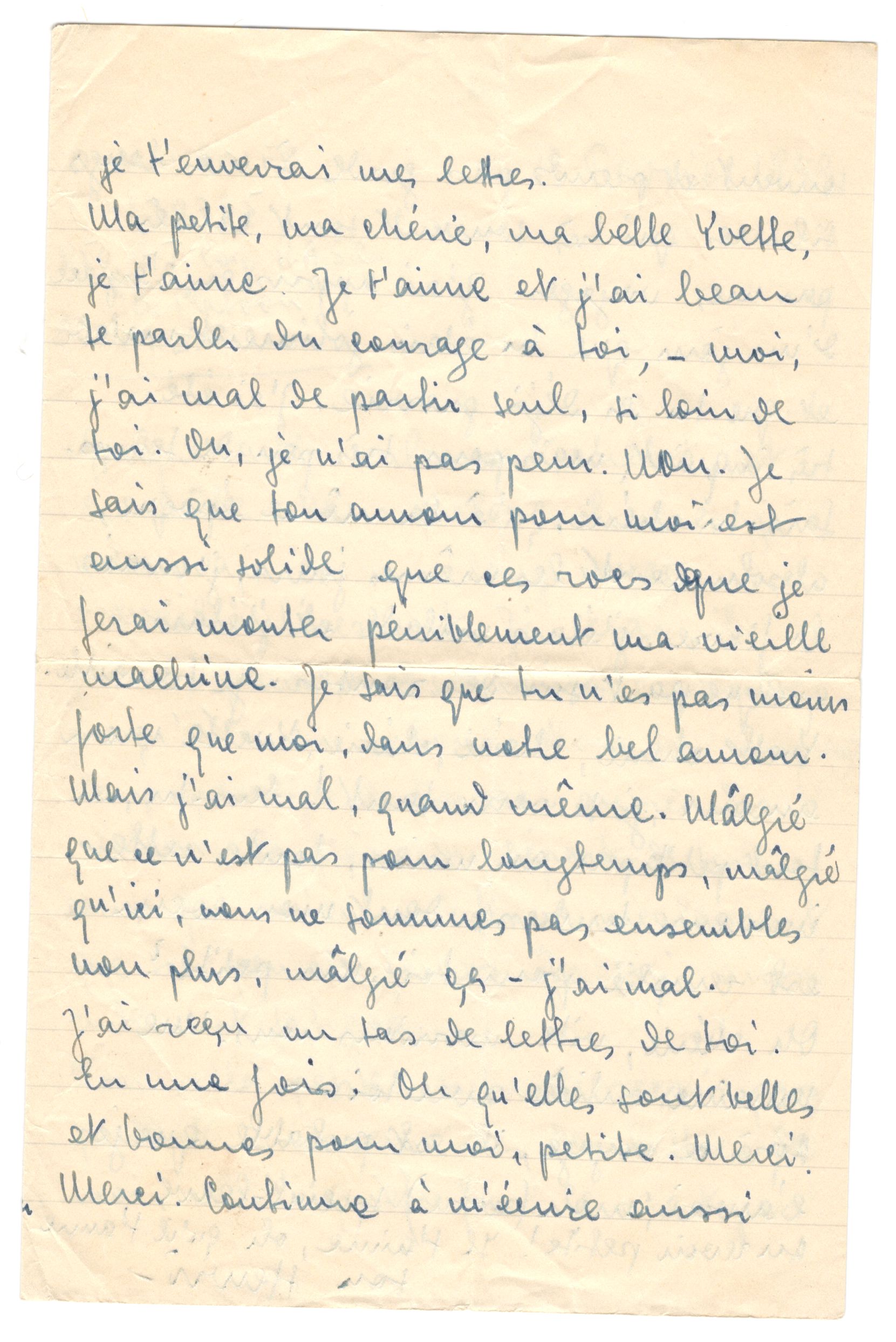 Yvette dearest darling, Yvette my love, I want you so much! Do you feel a little at least of this immense tenderness for you which fills my heart?