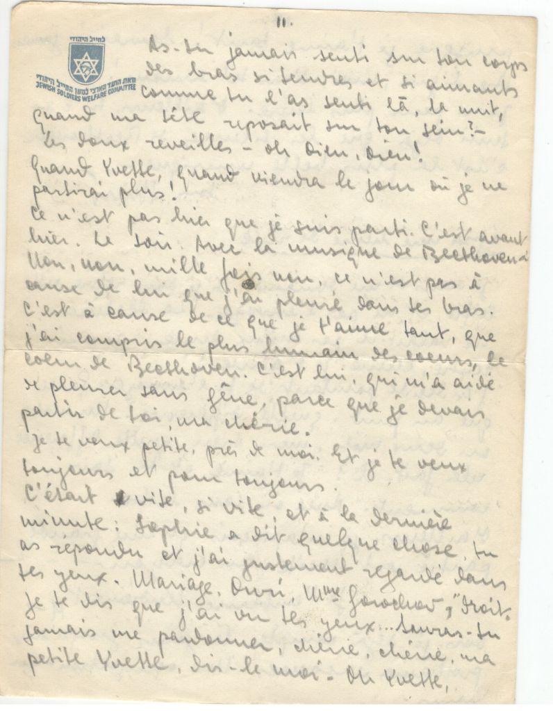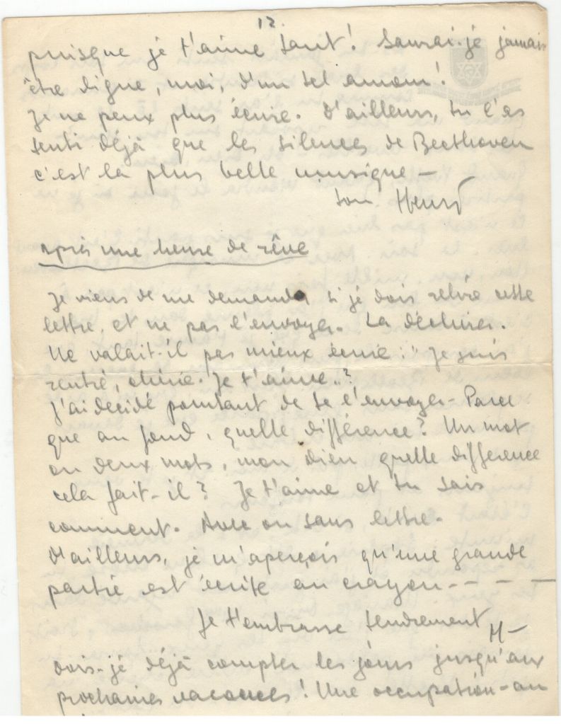 It’s not yesterday that I left. It is the day before yesterday. In the evening. With Beethoven’s music. No, no, a thousand times no, it’s not because of him that I cried in your arms. It’s because I love you so much, that I understood the most human of hearts, the heart of Beethoven. It is he who helped me to cry without embarrassment, because I had to leave you, my darling.