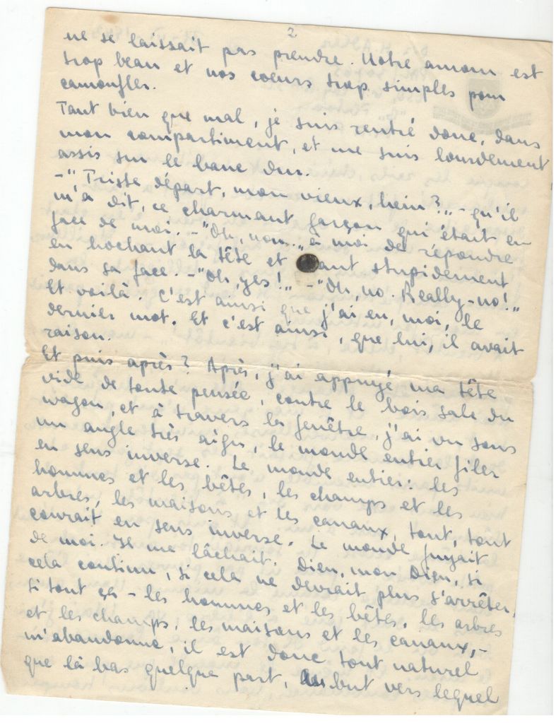 Darling, when the rails suddenly and spitefully curved and made you disappear from my sight – oh well, that was the end of my artificial smile […] and then, it was the same thing for you. You smiled – yes, you too – oh little adored one! – so as not to cry. But you were heartbroken. Like me. Both of us played the hero, va. But I saw deep into your soul. As you did mine. And even the world, which for stupid conformity, we wanted to deceive, was not taken in. […] Our love is too beautiful and our hearts too simple for camouflage.