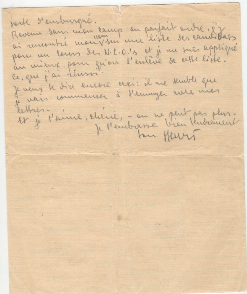 Returned to my camp in perfect order, I there came across my name on a list of candidates for a course for NCO’s and I applied au mieux to get my name off the list. I succeeded in that.