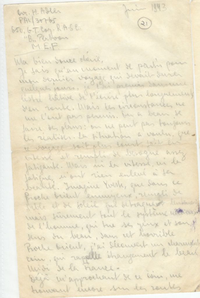 I know that at the moment of departure for my last journey which would last several days, I promised in a hasty letter to write you a longer letter en route. But circumstances did not allow it. It is easy to make plans; it is not always possible to carry them out. The situation demanded that the journey be shorter but speedy and filled with pretty tiring jobs. […] Imagine Yvette, that in the tiresome Near East, filled with sand and sun that slowly but surely wreck man’s nervous system, that kill his eyes and his sense of beauty, that in this horrible Near East, I discovered a charming corner which reminded me strangely of the beautiful South of France. Even approaching this corner, finding myself still on the dusty roads in the middle of the tubercular coughs of knocked up engines and suddenly seeing in front of me a riot of joyous trees with green leaves, truly green like those of Europe, I felt myself invaded by admiration.