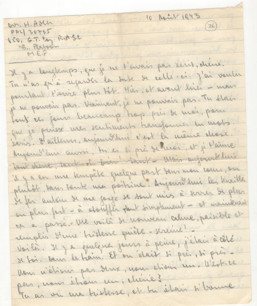 It is hard for me to finish this letter. I know that it is disjointed, so far from explaining all that is going on in me. It is so paltry when one feels all that I feel for you my darling! And besides, deep in the heart of me I believe that I will be able to see you again before my big departure. Will I come to your place? Or are you now on the road to come to mine? I don’t know. But I know that I will see you.