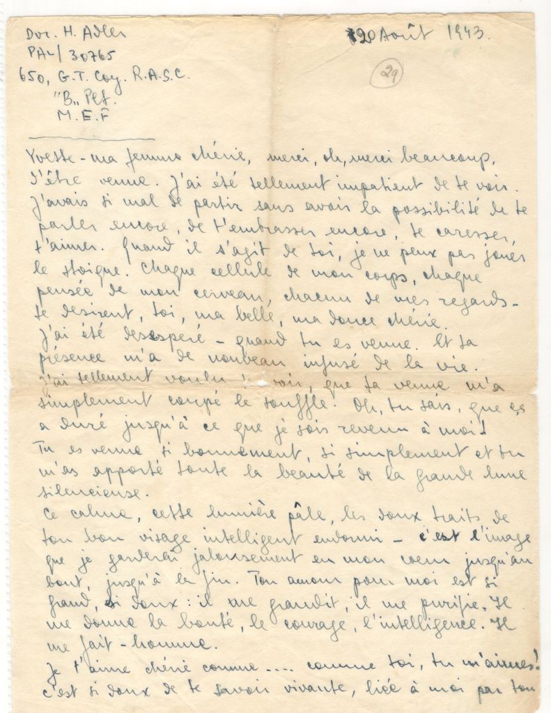 Yvette, my darling wife, thank you, oh thank you so much for having come. I was so impatient to see you. I felt so badly about leaving without being able to speak to you again, embrace you again, caress you, love you. When you are concerned, I cannot play the Stoic. Each cell of my body each thought in my brain, each of my looks desires you, my beautiful, sweet, darling. I was desperate – and then you came. And your presence infused new life into me. I so much wanted to see you that your arrival simply left me breathless. Oh you know that it lasted just until I got myself together again. You came so beautifully, so simply and you brought me all the beauty of the great silent moon.