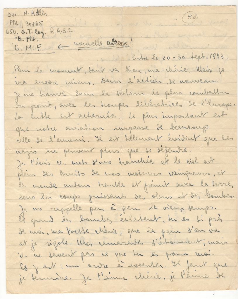For the moment, all goes well, my darling. But it will be even better. In action again. I find myself in the most fought over sector of the front, with the liberating troops of Europe, The battle is fierce. The most important thing is that our air power is far superior to that of the enemy. It is very evident that the nazis can no longer do more than defend themselves.