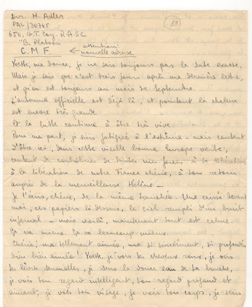 For my part, I am extremely tired, but pleased to be here in this good old green Europe, pleased to contribute with all my strength to its liberation, to the liberation of our France, darling, to your return to be with the marvellous Helene-