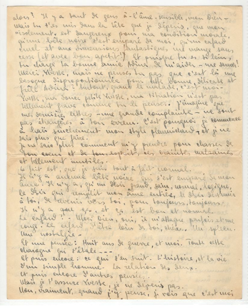 I held on to this letter for two days because I wanted to withdraw all the first part. But after long reflection I decided to send it as it is and not hide my emptiness.